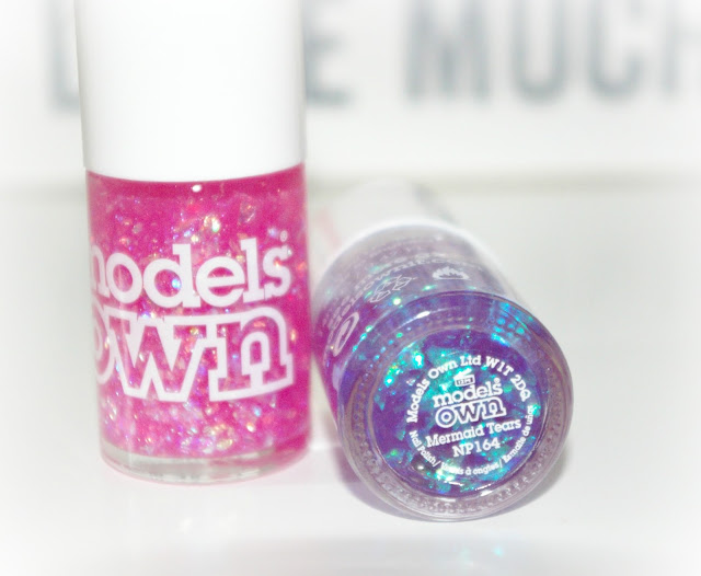 Just look at them *love heart eyes*, and how perfectly named are they also 'Pink Paradise' and 'Mermaid Tears'. These 2 nail polishes are from the Models Own Splash collection and I don't think they could be any more perfectly suited to that collection if they tried. Both Pink Paradise and Mermaid Tears contain chunky foil iridescent glitter pieces Which I love. Mermaid Tears has a lovely purple base colour and the large chunks of foil glitter which when mixed with that purple base colour appear a gorgeous bluey Green. Pink Paradise has a bright pink base colour but also has a base glitter within as well as the foil glitter so this appears a lot more sparkly to the eye. Both shades are designed to be worn above another colour as when worn on nails alone they don't have a huge colour pay off, they are both extremely versatile in which colours they can be worn above. Like most chunky glitters you have to have a dig around the pot to get a good amount of glitter on the brush, I find on average three dabs of this is about enough.